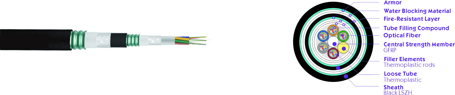 GYFZS53 Direct Buried Fire resistant Optical Fiber Cable | |||||||||||||||||||||||||