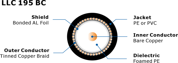 LLC 195 BC NO.7101002 LMR195 was designed and produced by Times Microwave; CNT195 was designed and produced by Compex; LLC195 was designed and produced by Zion Communications. LLC-195 is an equivalent and high-quality alternative to RG-58. Designed for antenna feeder jumper assemblies runs requiring a high-performance, flexible, low loss RF cable | ||||||||