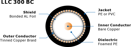 LLC 300 BC NO.7101005 LMR300 was designed and produced by Times Microwave; CNT300 was designed and produced by Compex; LLC300 was designed and produced by Zion Communications. LLC-300 is a drop-in replacement for RG8X. Designed for antenna feeder jumper assemblies runs requiring a high-performance, flexible, low loss RF cable | ||||||||