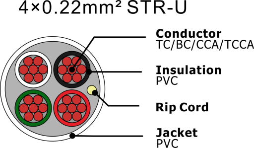 4 x (7/0.20mm TC/BC/CCA/TCCA) | ||||