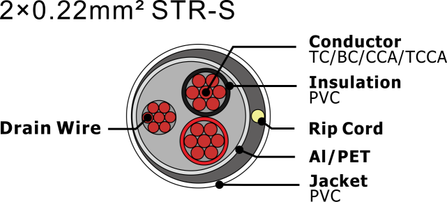 2 x (7/0.20mm TC/BC/CCA/TCCA) | ||||