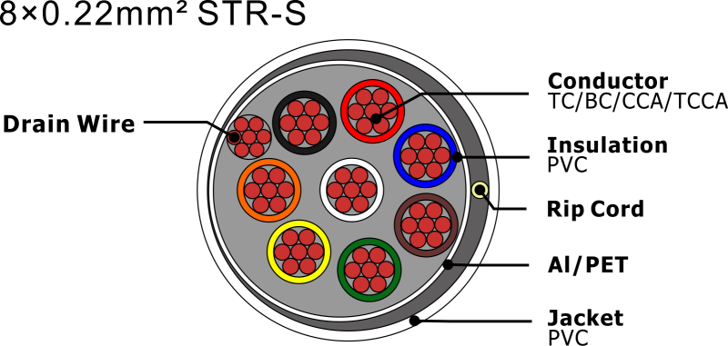 Conductor: 8 x (7/0.20mm TC/BC/CCA/TCCA)