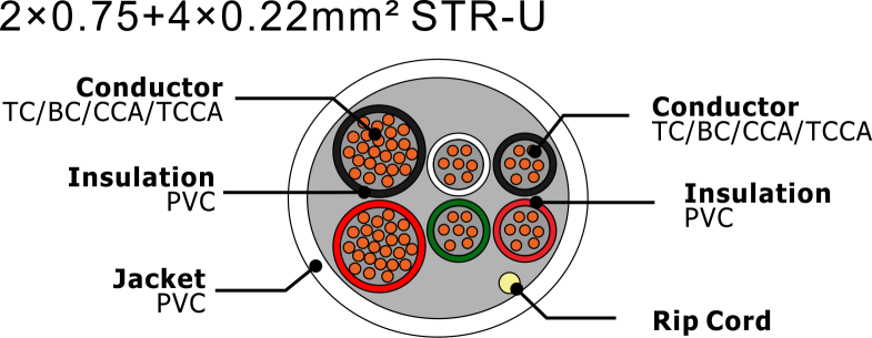 HELLOSIGNAL NO.7111242 2×0.75+4×0.22mm² STR-U Security Alarm Cable ××× M | ||||
