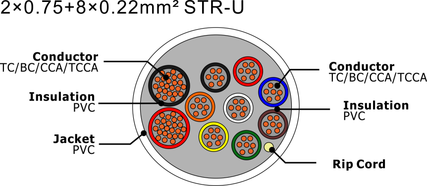 2×0.75+8×0.22mm² STR-U | ||||