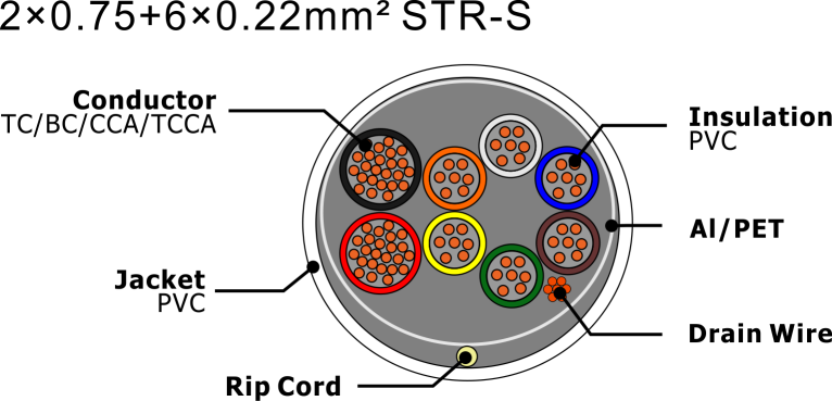 HELLOSIGNAL NO.7111263 2×0.75+6×0.22mm² STR-S Security Alarm Cable ××× M | ||||