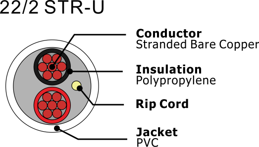 HELLOSIGNAL NO.7111301 22/2 STR-U 2C E××××××(UL) Unshielded PVC SUN RES(ROHS) ××××M/FT DEVICE/ZONE A B C D E F 1 2 3 4 5 6 7 8 9 | ||||