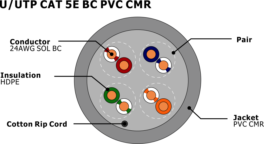U/UTP CAT 5E 4PR 24AWG PVC CMR Ethernet Network Cable NO.7112104 | ||||||||