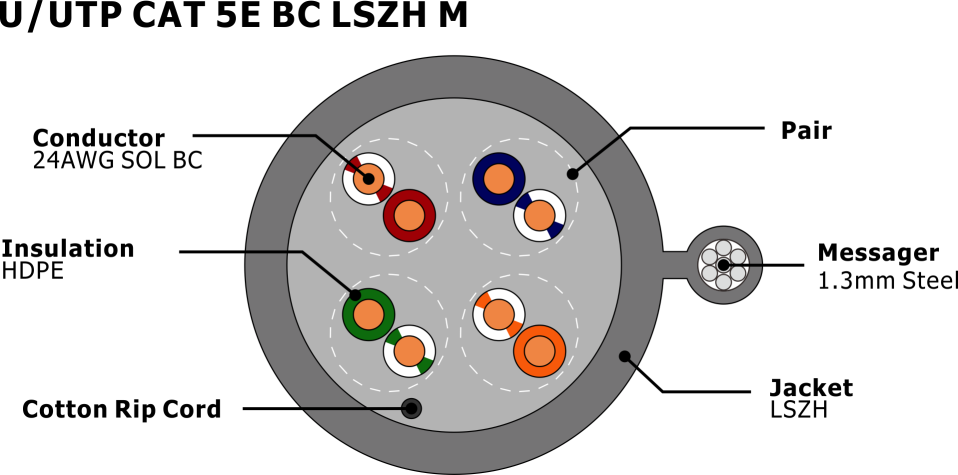 U/UTP CAT 5E Twisted Pair Steel Messenger Lan Cable | ||||||||