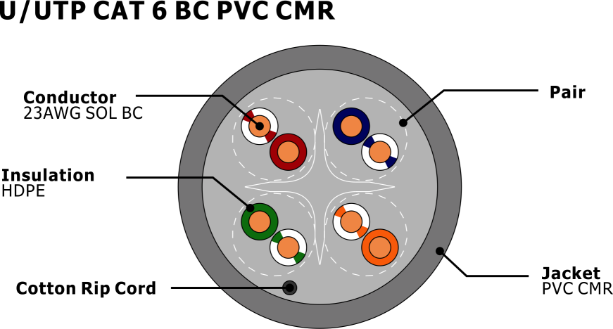 U/UTP CAT6 4PR 23AWG PVC CMR Ethernet Network Cable | ||||||||
