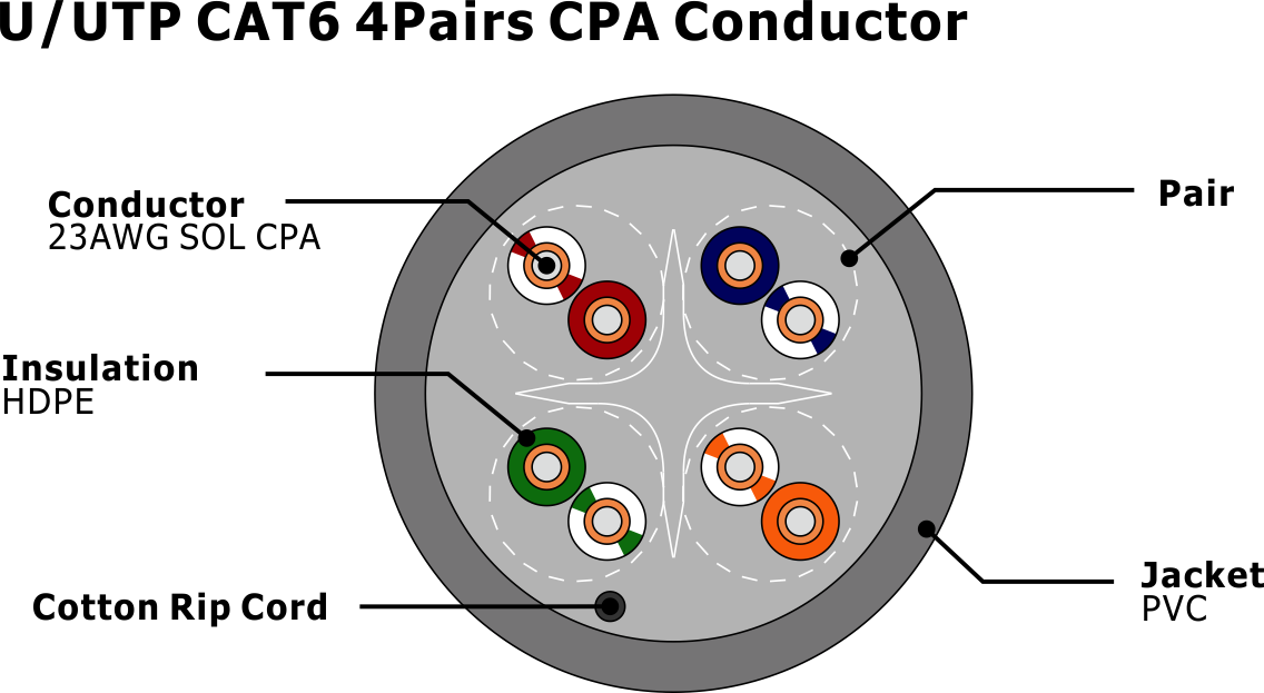 U/UTP CAT6 4PR 23AWG PVC CPA Conductor | ||||||