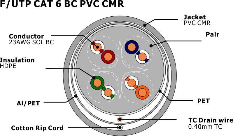F/UTP CAT6 4PR 23AWG PVC CMR Ethernet Network Cable NO.7112214 | ||||||||