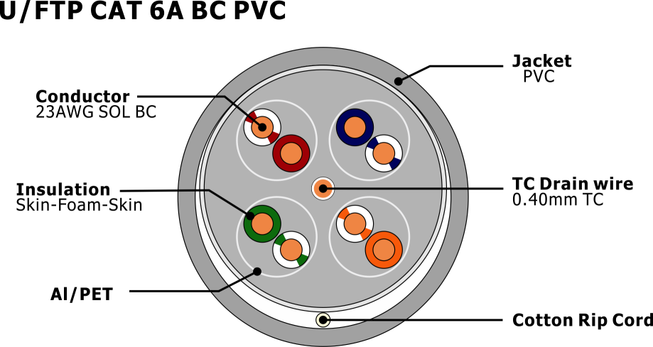 U/FTP CAT6A 4PR 23AWG PVC Ethernet network cable | ||||||||