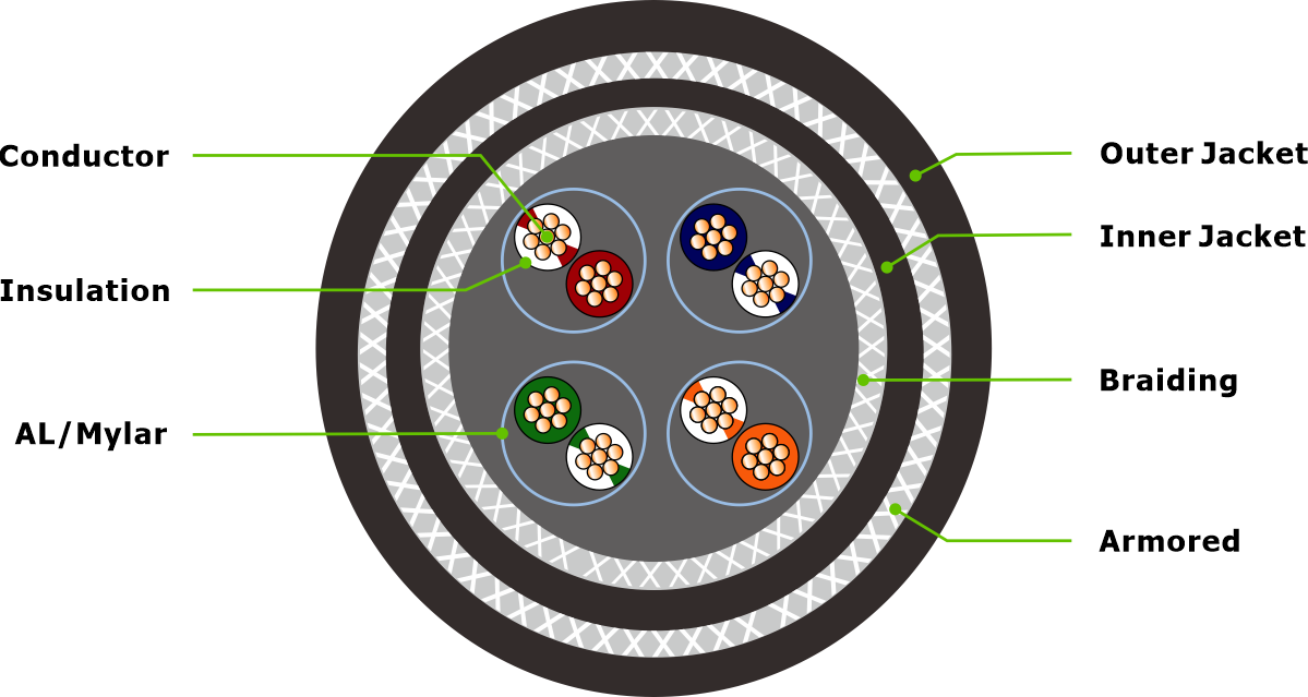 Marine Armored/SWB Cable Cat.7 S/FTP 4 pairs SHF1 | ||||||||