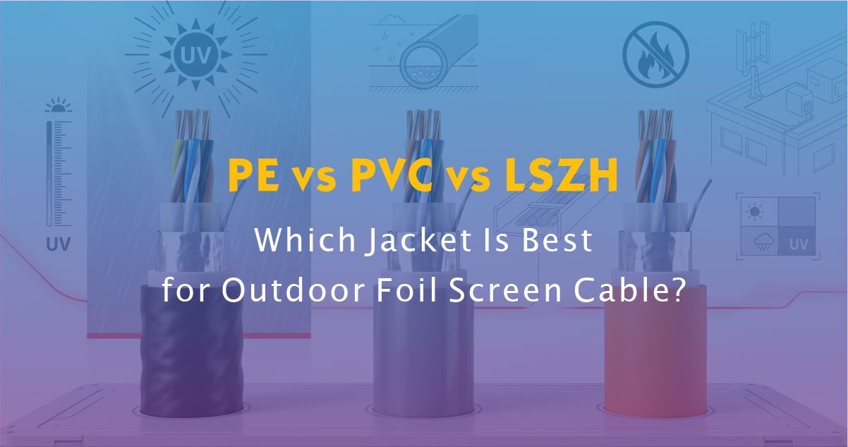 For outdoor foil screen cable, the right jacket is determined by UV exposure, moisture, fire safety, and installation method—not by shielding alone. PE is usually the default for true outdoor duty, PVC can work in lighter outdoor applications with proper sunlight rating, and LSZH is the preferred option when low smoke and low halogen performance matter.